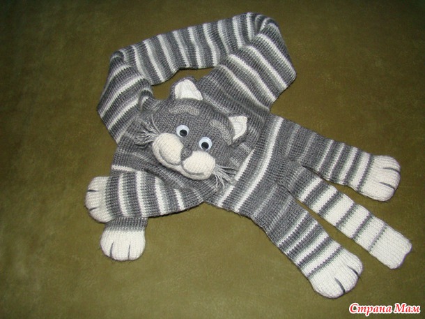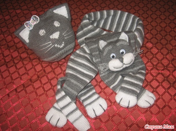 Я только сегодня своей дочке такого же почти серого кота в виде шарфа подарила , а шапка у нас котовская тоже