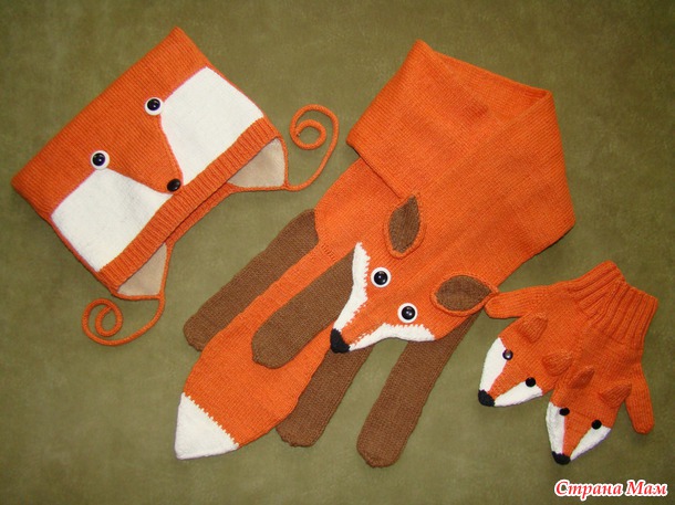а вот моё исполнение шарфа лисы и шапочки к ней.Хотя мордочка лисы напоминает хорька.