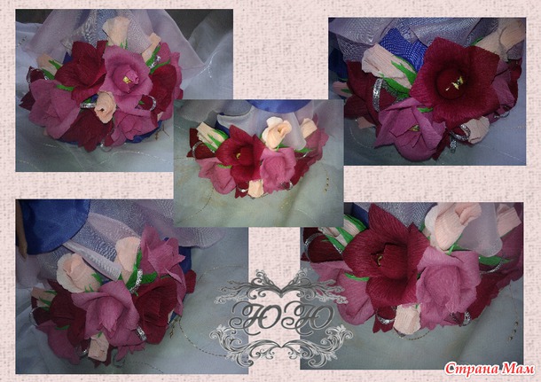 Благодарю Ларису http://pavvlova.stranamam.ru/ за её подробное мк роз и бутонов, вот здесь проходил совместник в "Душевной компании"где подробно и понятно она творила эти цветочки. По её схемки и я накрутила цветочков...