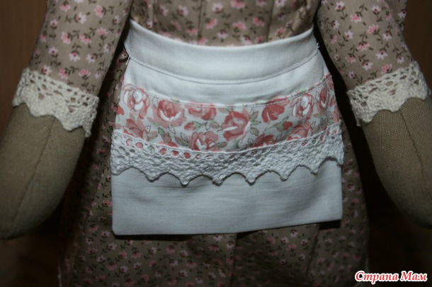 Это получилась весенняя девочка. Этот характер стала диктовать веселенькая тканька в цветочек. И такая она получилась нежная и весенняя. что фартучек. белая шалька и тюльпанчики просто сами собой получились