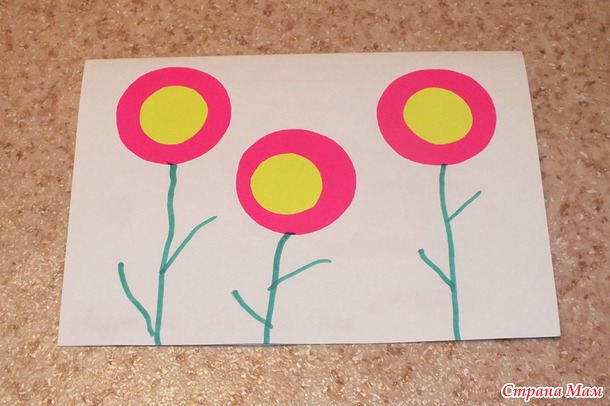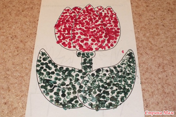 Стебельки и листики сыночек рисовал сам.