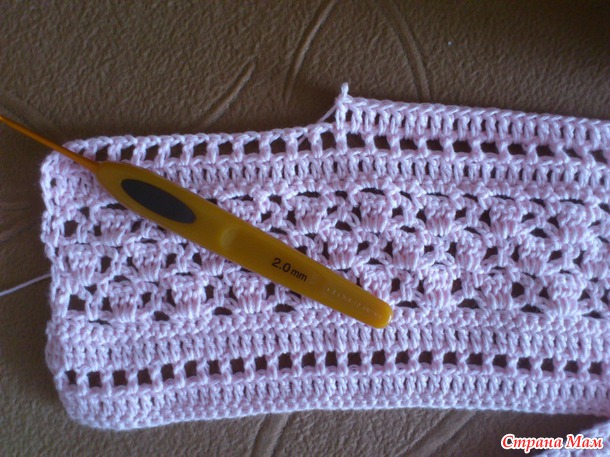 Обязала вкруговую полочки и горловину - один ряд СБН, второй ряд ССН, третий ряд - опять СБН (дырочки для пуговок не забыть сделать), и последний ряд - СБН. Горловина обвязана только СБН