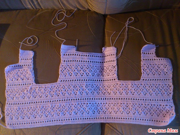 вяжу сразу и спинку и две полочки одним полотном. Вяжу точно по схеме оригинала