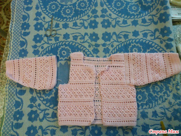 Опять вяжу для внучки. Ей уже седьмой месяц, но кофточку вяжу с расчетом месяцев на 9-10. Очень мне понравилась вот эта кофточка