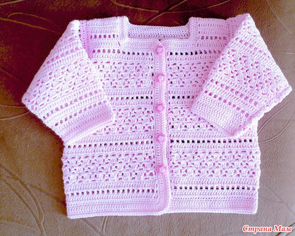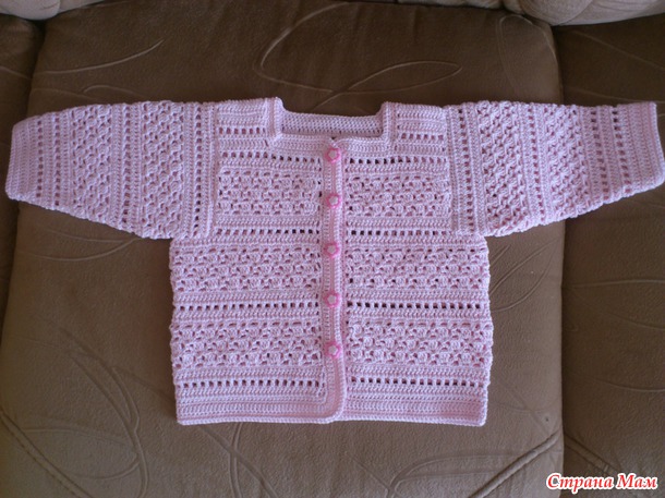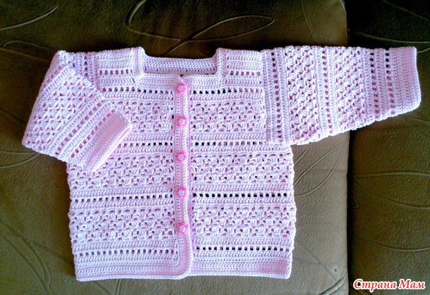 Опять вяжу для внучки. Ей уже седьмой месяц, но кофточку вяжу с расчетом месяцев на 9-10. Очень мне понравилась вот эта кофточка