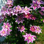 Третья группа обрезки или группа С - объединяет клематисы, у которых основная масса цветков образуется на побегах текущего года (бывшие группы Jackmanii, Viticella и их гибриды). Они цветут с июля до середины сентября; максимум цветения наблюдается в конце июля - в августе. Обрезка этой группы клематисов очень проста: перед укрытием на зиму отрезают все побеги до первого настоящего листа (можно оставить и большее количество почек) или до основания.