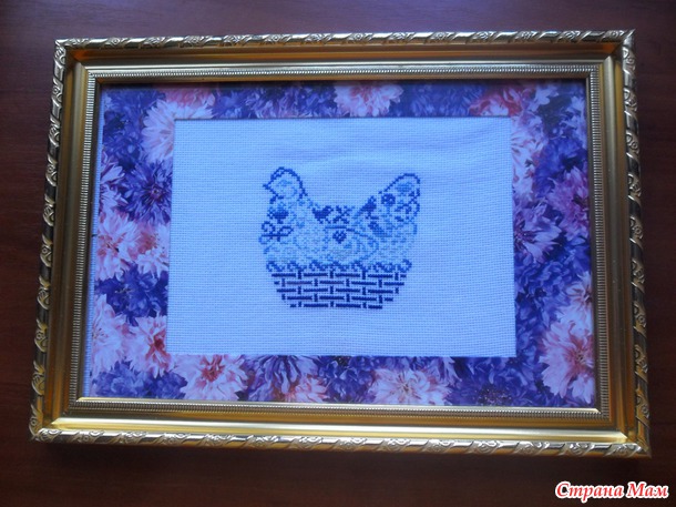 Моя мама пожелала себе вышитых курочек. Но так как интересного для себя сюжета я еще не нашла, решила хоть частично, но выполнить мамино желание. Приняла решение к 8 Марта вышить ей таких ажурных курочек. Оформила также собственноручно. Но и здесь не обошлось без "поворотов судьбы" - в продаже не было дух одинаковых рамок. Пришлось оформлять в имеющиеся...