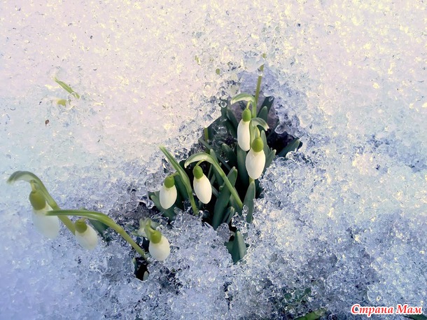 Подснежники, открытка и сын.