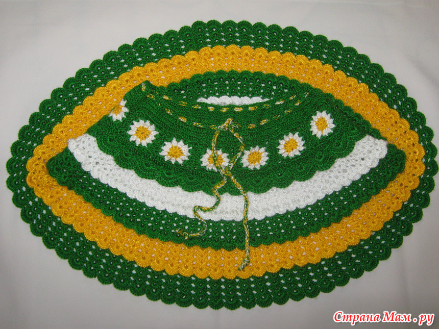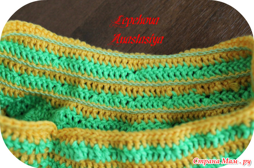 Долго мучилась с резинкой и пряжи хватило прям впритык два моточка - зеленый и желтый. Все выходные искала в магазинах такую - не нашла. Но я довольна тем, что получилось! Ура!!!