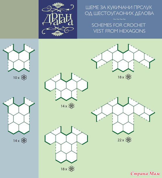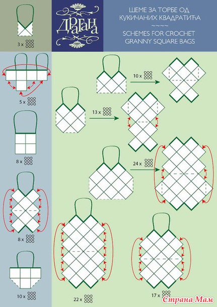 Нашла в интернете вот такой журнальчик в помощь тем, кто вяжет мотивами. В нем схемы с раскладкой мотивов в изделиях: круглых, квадратных, треугольных, шестиугольных - много разных вариантов. Выкладываю только 1 часть, остальные найдете у меня в альбоме https://www.stranamam.ru/photo/7374537/
