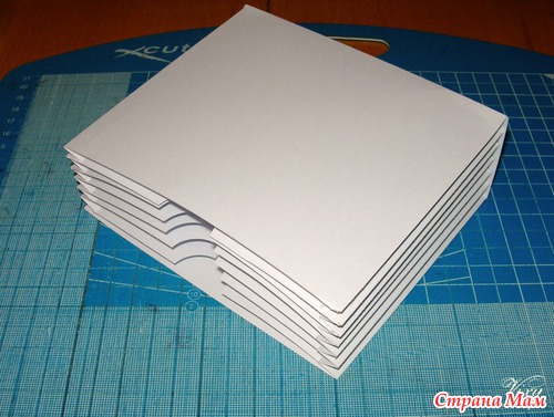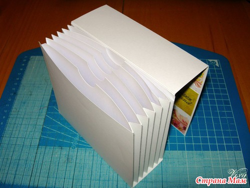 Разделения - это прямоугольники 12 на 14 см. Сделайте 6 штук. Дыроколом или ножницами сделайте полукруглые вырезы.