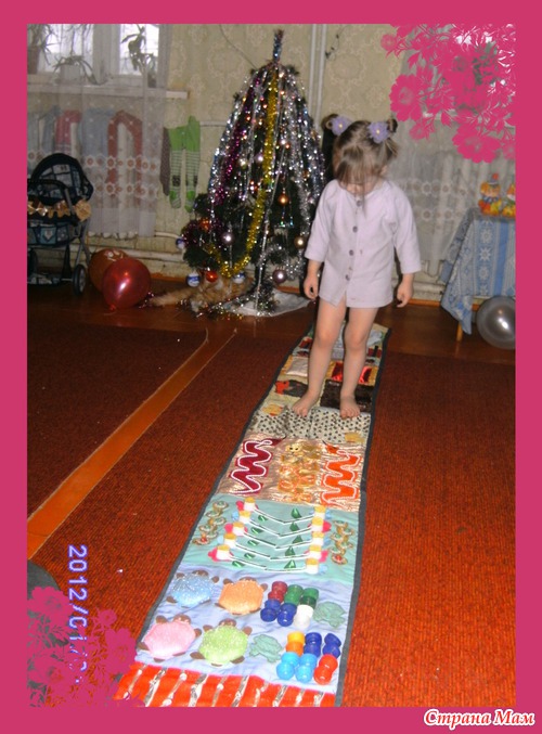 Давно хотела сшить дочке массажную дорожку, просмотрела много интересного в инете и вот что у меня в результате получилось.