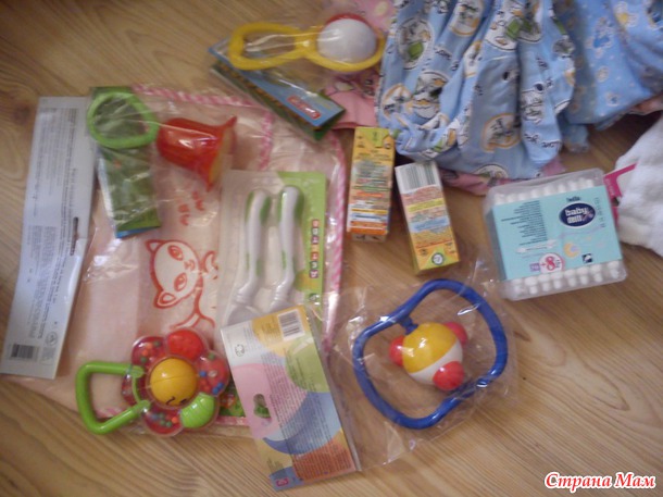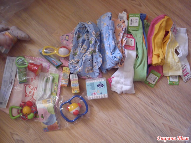 тут и погремушки, и ватные палочки, и комбезики, и колготочки, и носочки, и даже пюрешки, 2 из которых были незамедлительно уничтожены