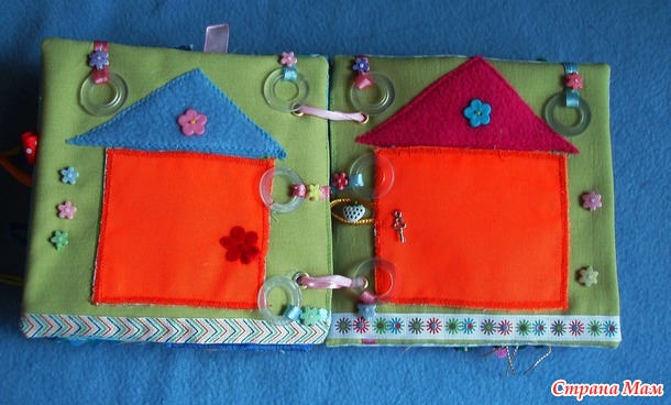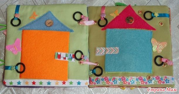 Домики с разными застежками. Можно обыграть фон для детей постарше. Например, добавить шнуровку