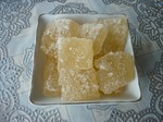 Готовый мармелад разрезаем на кубики, которые обмакиваем в сахар со всех сторон.
