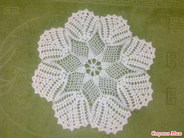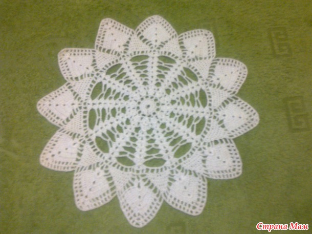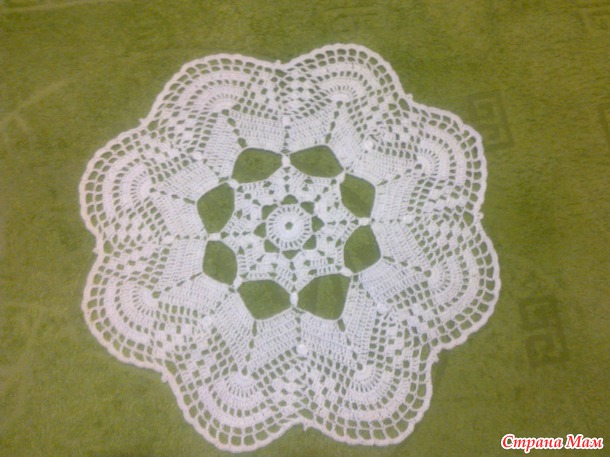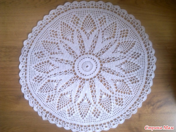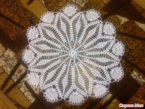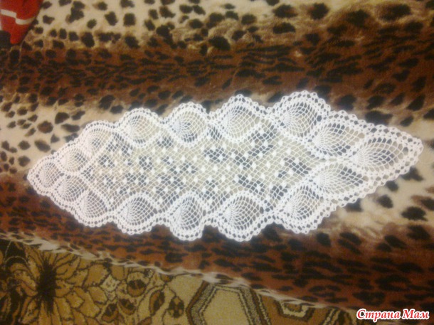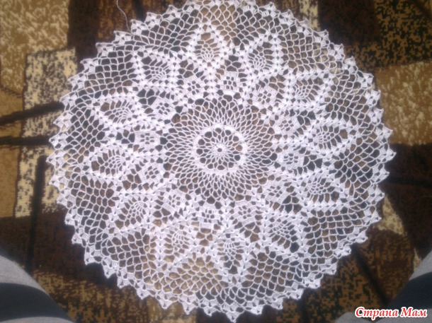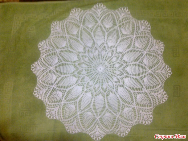 Я очень довольна етой салфеточкой, я её связала в подарочек на комод 90см получилось. Пряжа Макси 100% хлопок, крючок 1,6. Хочу и себе связать.
