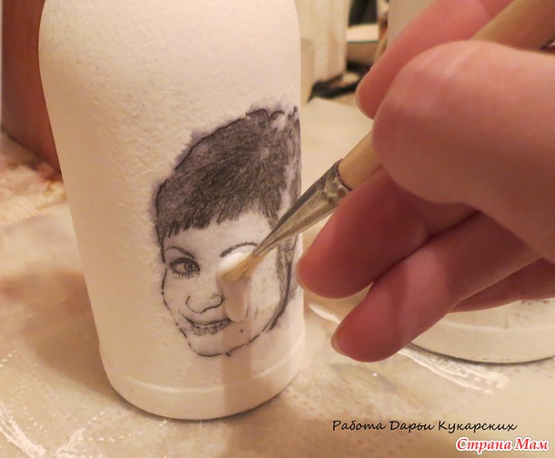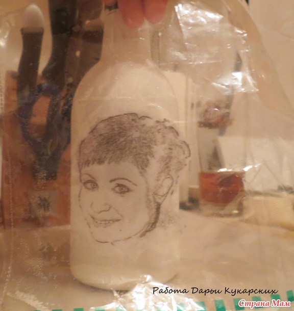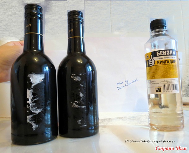 ватным диском и бензином прошлась по всей поверхности бутылки: