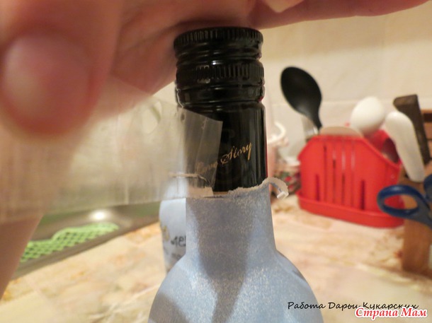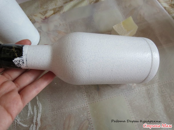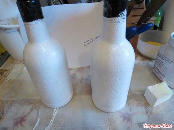 , не забудьте оставить хвостикВот так выглядят загрунтованные бутылочки, я делаю сразу две, на юбилеи мамы и дочки