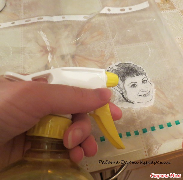 Готовимся к самому ответственному этапу: перенос картинки. Нам нужен файл, пульверизатор с водой, тряпочка сухая, желательно быстровпитывающая, кисточка и клей ПВА.