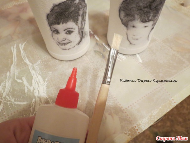 Дальше займемся картинками, я решила выпендриться и сделать портреты, для этого распечатываю на салфетке обработанный мною же фотографии, кому интересно могу описать этот мучительный процесс, а тут пусть будет все готовое. Кто делает с салфеток тоже достает, выбирает какие изборажения нравятся