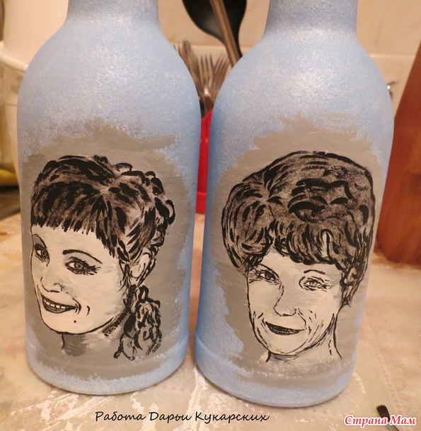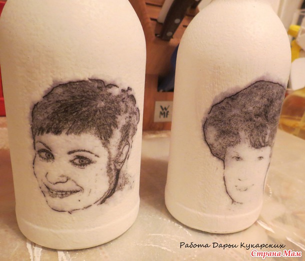 Вот так выглядят загрунтованные бутылочки, я делаю сразу две, на юбилеи мамы и дочки