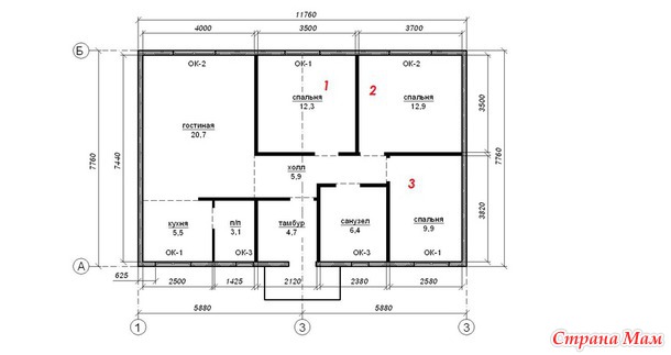 Всего 3 спальни (1 - наша с мужем, 2 - детская для 2 мальчиков, 3 - кабинет + запасное спальное место).