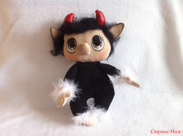 Только я бы чертенку рожки сделала не красные, они слишком агрессивные получились. А он же еще маленький. Можно было бы серые сделать, ну, или серебряные, ну, золотые в крайнем случае. Или зелененькие...