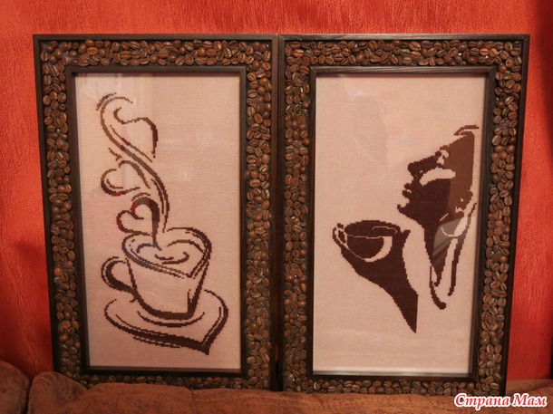 Опять кофейная тематика, схемы из интернета, нитки шерсть (кофе пахнет по всей комнате, прикольно)
