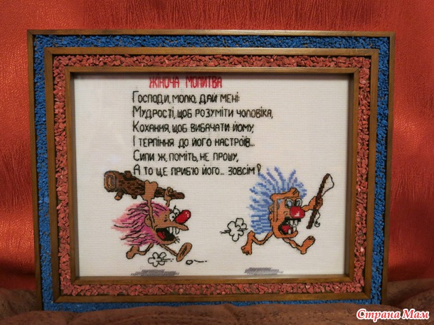 Следующую вышила мужу в шутку на день святого Валентина пару лет назад, была в просто раме, но так намного лучше, схема из интернета, нитки шерсть самоподбор