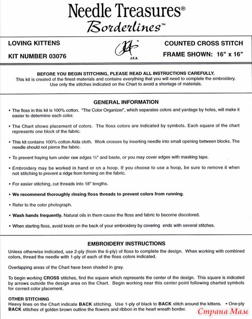 Вот нашла котеек, делюсь Схема вышивки крестом двух маленьких котят от фирмы Needle Treasures под названием "Влюбленные котята" (Loving Kittens). Очень трогательная картина двух котят (серенького и рыженького) свернувшихся в форме сердца в цветах. Размер вышитой картины 30*30 см. Читать полностью