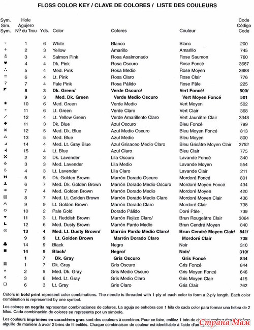 К сожалению, правильно увидела Там только такое описание было, может более опытные мастерицы расшифруют. Для меня главное схема, номера значения не имеют, целый кулечище ниток мулине без номеров, вот уже и привыкла сама подбирать цвета, так что в этом вопросе не помогу