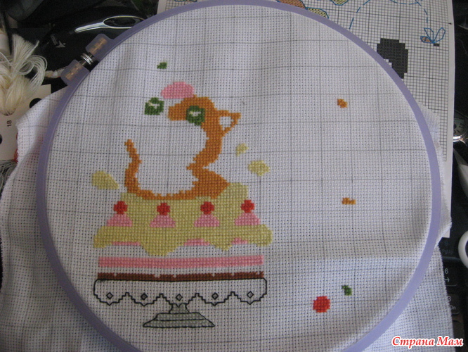 Хочу сказать большое спасибо за совместник. Потому что купила я набор давно, лежал сколько, а я всё никак не могла его ни начать ни вышить. Спасибо Вам!
