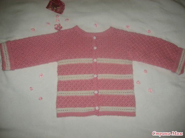 Связала своей доце теплую кофточку. Понимаю что уже пора вязать летнее. Но уж так получилось что связала только сейчас. Поэтому сделала чуть великоватую, что бы до осени не стала маленькой. Ну и шапочку за одно. По длине немного подвернула, да и рукава тоже. Еще и шапочку за одно Читать полностью
