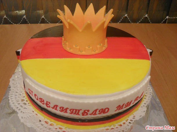 Тортик для преподавателя немецкого языка, внутри - ванильный+шоколадный бисквит+сметанный крем+киви+банан., вес 3кг.
