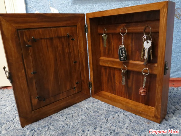 Ключницу делал впервые, понравилось)) дерево красил он, я бы хотела светлее, хотя и так ничего, ключей помещается много и не на виду.