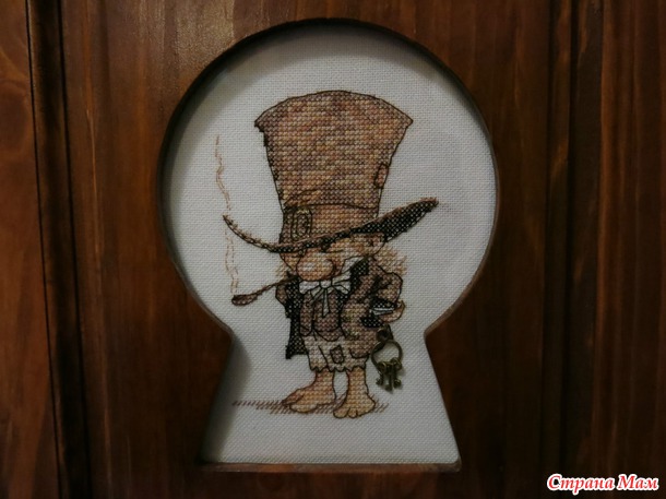 Понравился мне этот джентльмен, купила набор, вышила и думала как его оригинально оформить, сама вышивка маленькая но очень интересная.