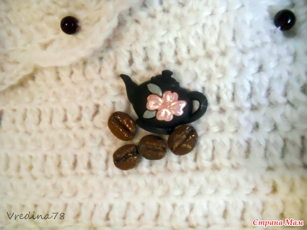 Залакировала зёрна арабики, чтобы не окрасили светлое пальто (мама дорогая, как они пахнууут! ), и приклеила между пуговицами.
