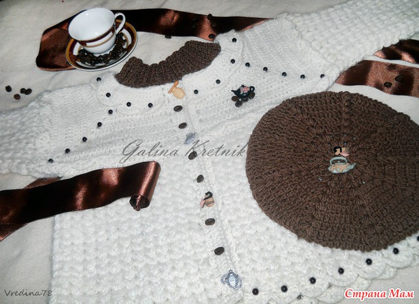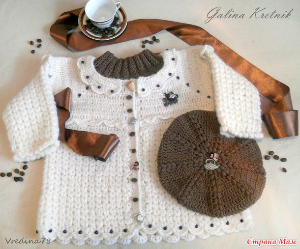Комплект "Кофейные зёрнышки" (пальтишко, беретик и манишка-воротничок)