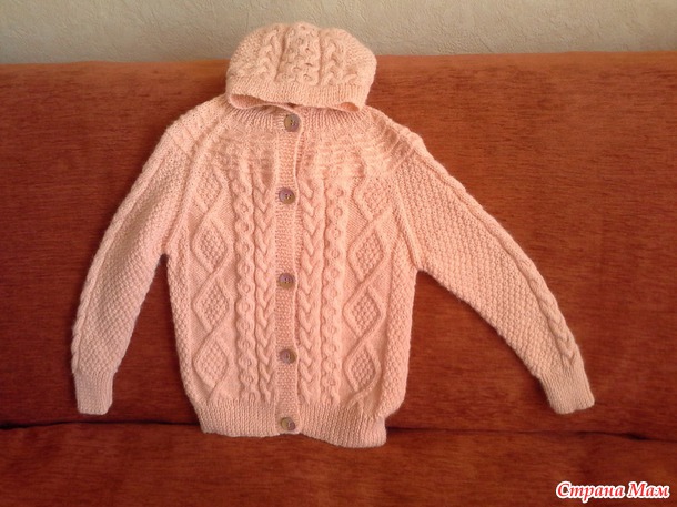 Предоставляю на ваш суд курточку с аранами, связанную для маленькой девочки, которая лечится в Германии от тяжелой болезни. Он-лайн по курточке был вот тут https://www.stranamam.ru/post/6029285/