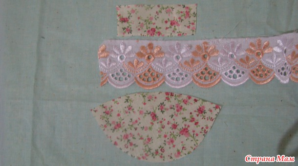 Х\б ткань длинной 40 см, шириной 90 см. Суровая бязь длинной 30 см. шириной 90 см, Кружево, липучки, эластичная тесьма, Тесьма для банта.