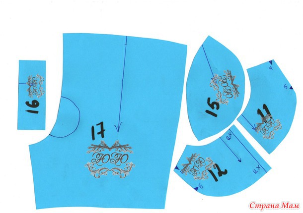 Обратите внимание на стрелки направление долевой нити, припуски на швы по -5 мм