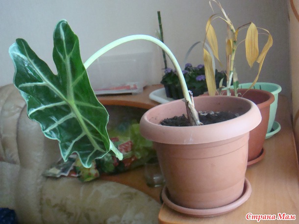 25. диффенбахия. уже давно сидит, но листочек не пускает.
