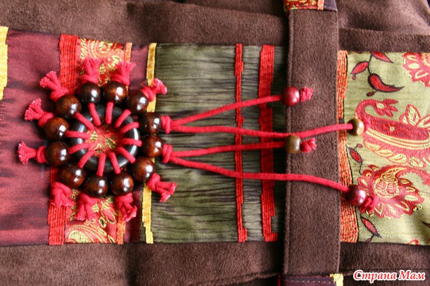 Привлекло оформление - этностиль: ткань, бусины, шнурки: