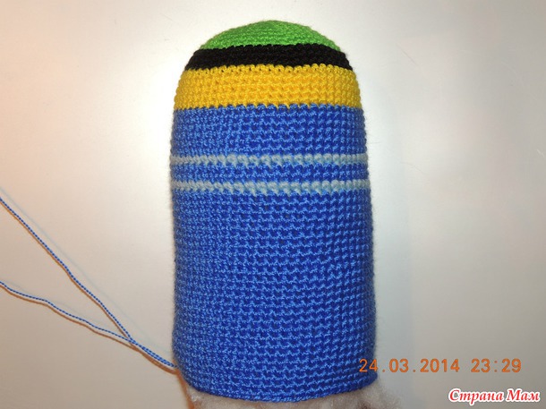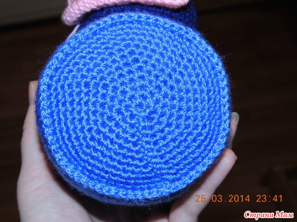 Вяжем донышко тела синей нитью: