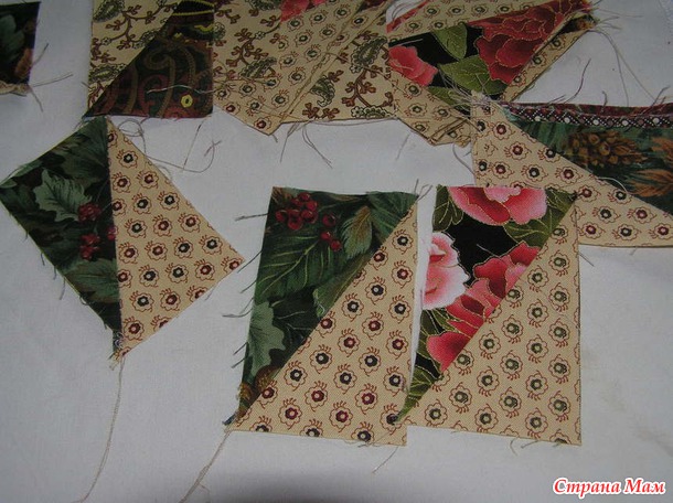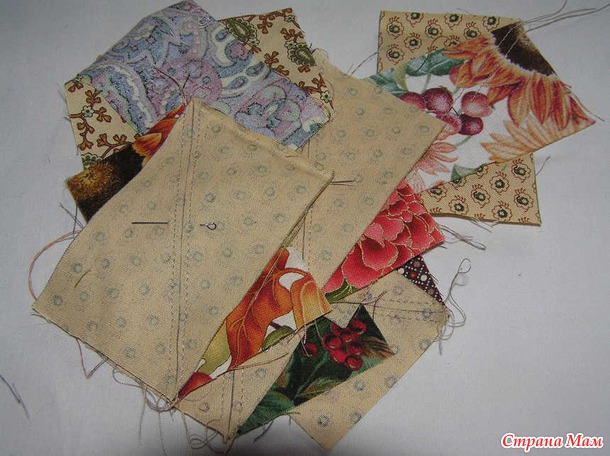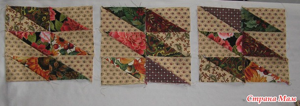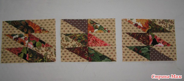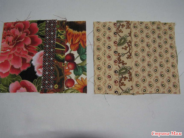 Прямоугольники сшиваем, утюжим, обрезаем все лишнее, подравнивая края сшитых блоков.