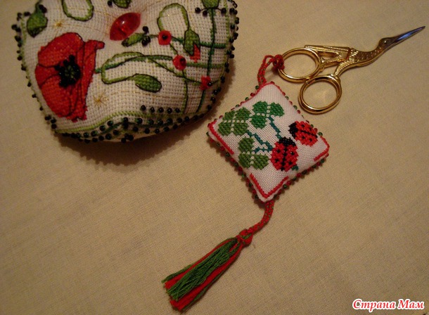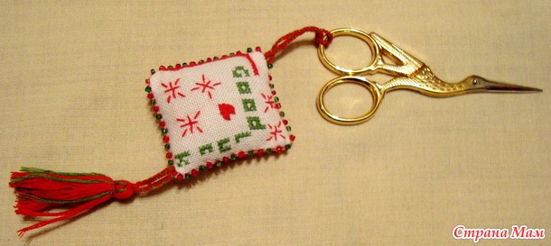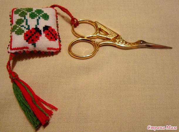 А еще и прочла : "Маячок для ножниц имеет массу достоинств. Во-первых, при взгляде на оригинальный вышитый маячок непременно появится желание новых творческих свершений. Во-вторых, маячок не даст вашим ножницам затеряться на столе, под тканью или нитками. В-третьих, маячок напомнит вашим родным и близким, что это не просто ножницы, а НОЖНИЦЫ ДЛЯ РУКОДЕЛИЯ! Их не стоит брать без необходимости, а если взяли, то обязательно вернуть на место. Вот видите, если у вас до сих пор нет маячка для ножниц, то его срочно нужно сделать!!!