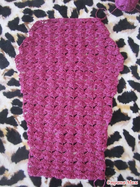 , то есть меня устроит длина в 14 рядов узоров. После 14 ряда убавляем с двух сторон по рапорту и продолжаем вязать уже до плеча.
