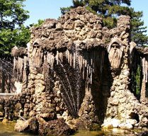 В 1910 г. этот эффектный, но невыразительный по художественному исполнению фонтан был заменен другим, украшающим сквер и теперь. Автор проекта – скульптор Людвиг Шодский. Новому фонтану дали имя „Сказка". Сооружение напоминает сказочный грот, вход в который со всех сторон охраняют бородатые гномы. Струи воды образуют вокруг грота сплошную серебристую завесу. Грот стоит в центре широкого круглого бассейна, наполняемого водой из верхней части фонтана.