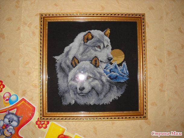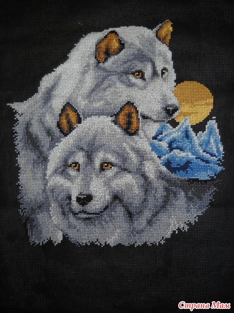 Вот они-мои красавцы Сама работа была закончена еще в августе 2013, но оформилась только сейчас Волки "Vervaco" Канва: Аида14 черная Ниточки: гамма Кол-во цветов: 14 Размер: 135х145 кр. Читать полностью