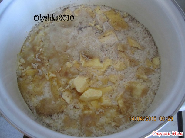 В эмалированную кастрюлю с вечера поместить не перемешивая: